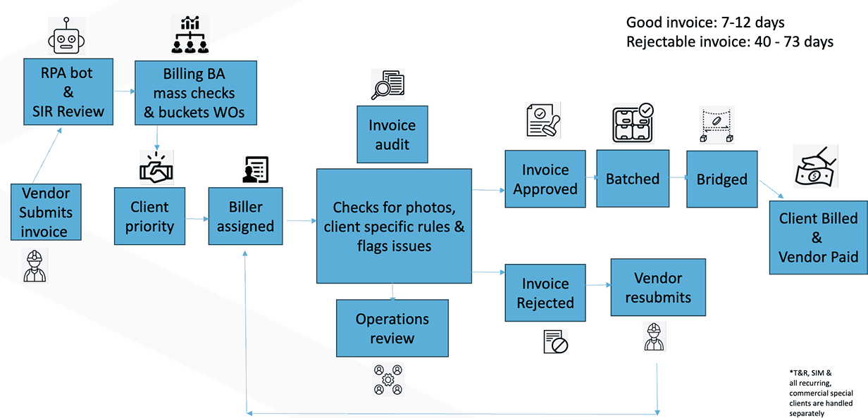 Designed low-fidelity workflows integrating these new rules into the existing vendor invoice templates and mapped the journey to a brand-new internal Audit Desk for the billing team.